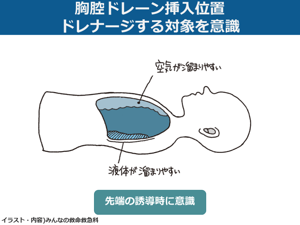 ドレナージする対象を意識 先端の誘導時に意識 イラスト・内容)みんなの救命救急科