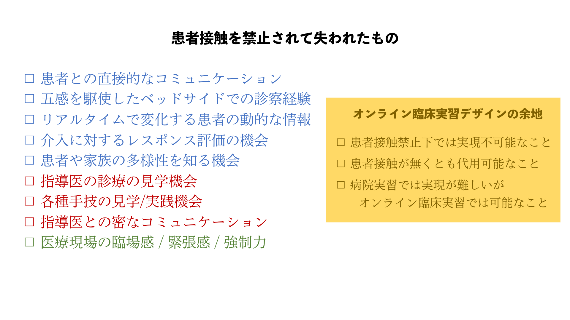 #5. オンライン臨床実習 論点 患者接触が禁じられた臨床実習を どのように設計するか ?