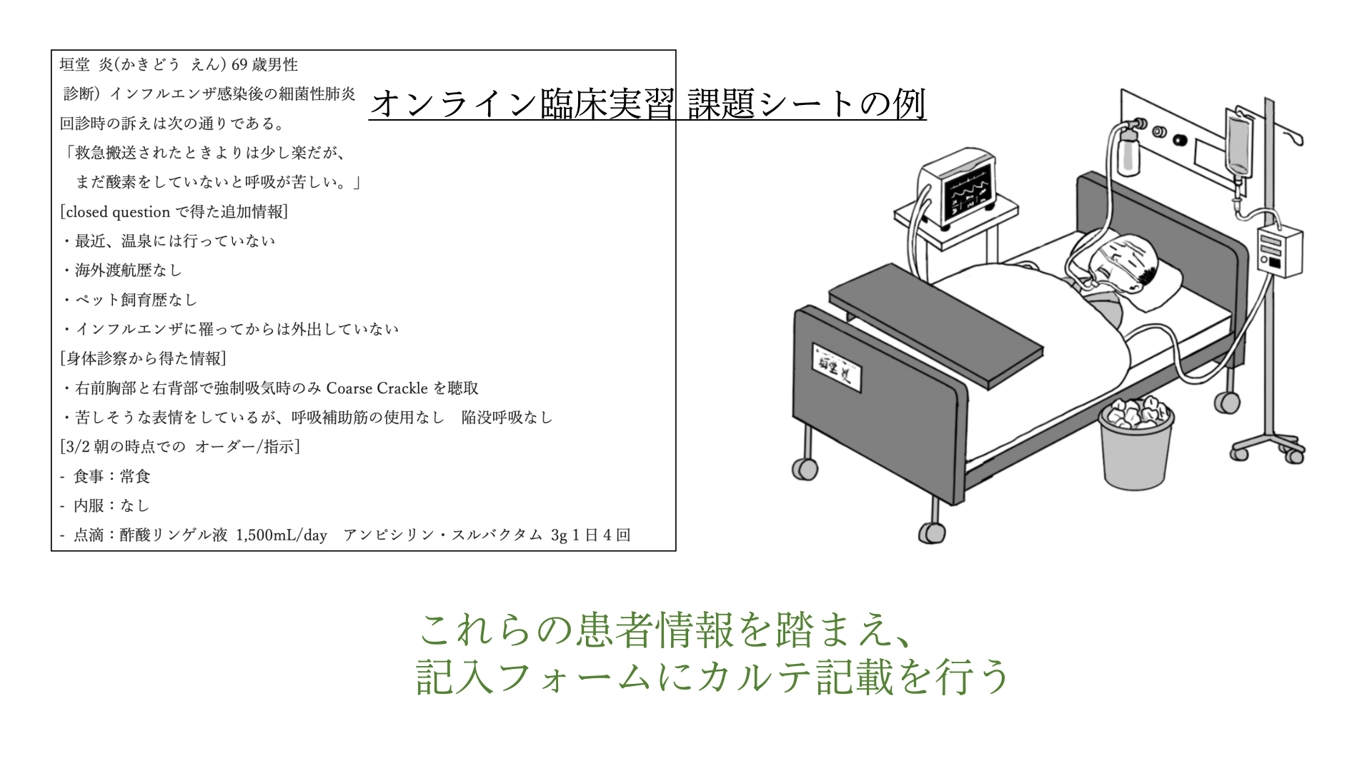 #25. オンライン臨床実習 課題シートの例 これらの患者情報を踏まえ、 記入フォームにカルテ記載を行う