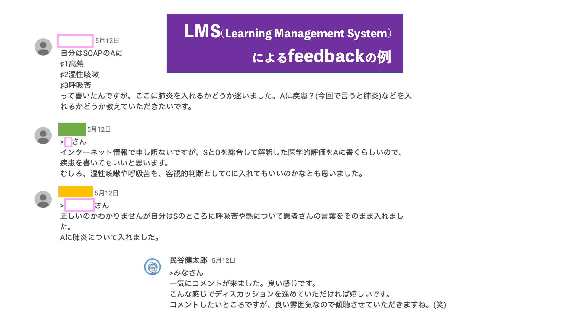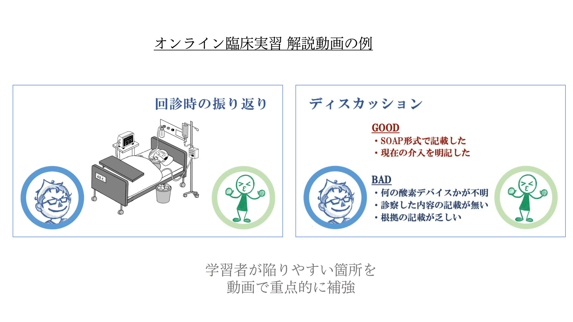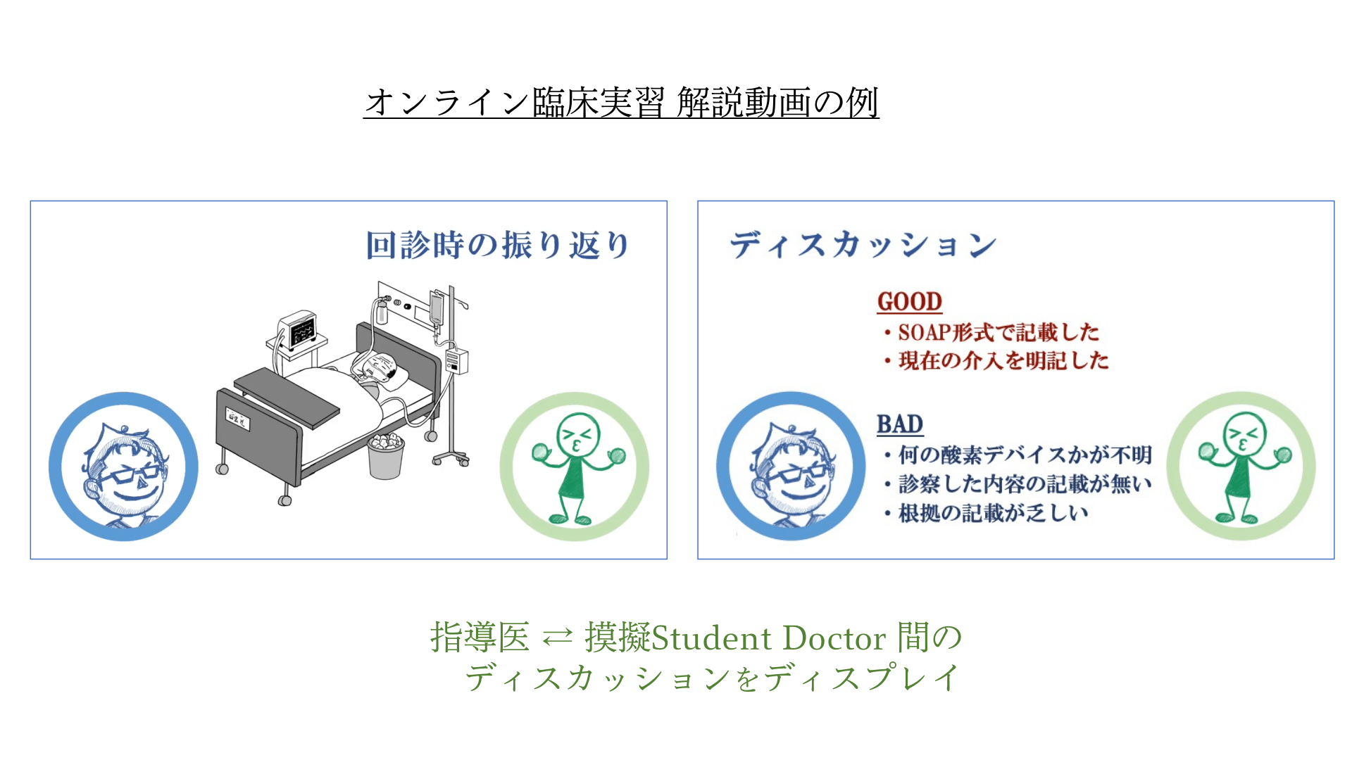 #26. オンライン臨床実習 解説動画の例 指導医 ⇄ 摸擬Student Doctor 間の ディスカッションをディスプレイ