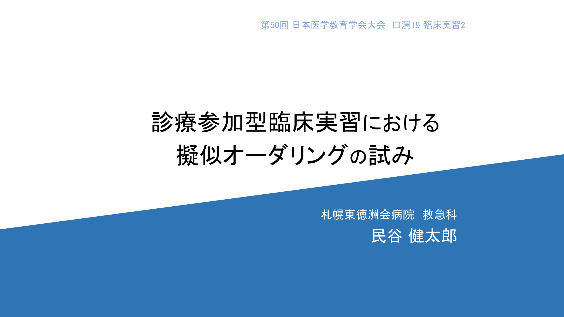 #30. 第50回 日本医学教育学会大会 口演19 臨床実習2 診療参加型臨床実習における 擬似オーダリングの試み 札幌東徳洲会病院 救急科 民谷 健太郎