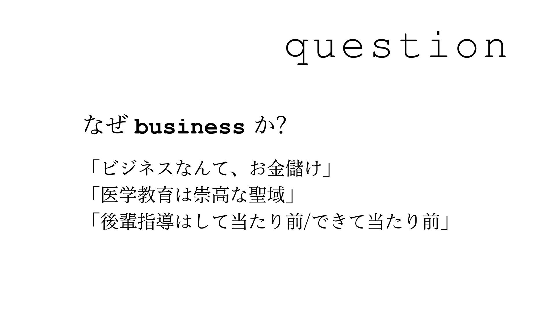 #46. question なぜ business か? 「ビジネスなんて、お金儲け」 「医学教育は崇高な聖域」 「後輩指導はして当たり前/できて当たり前」