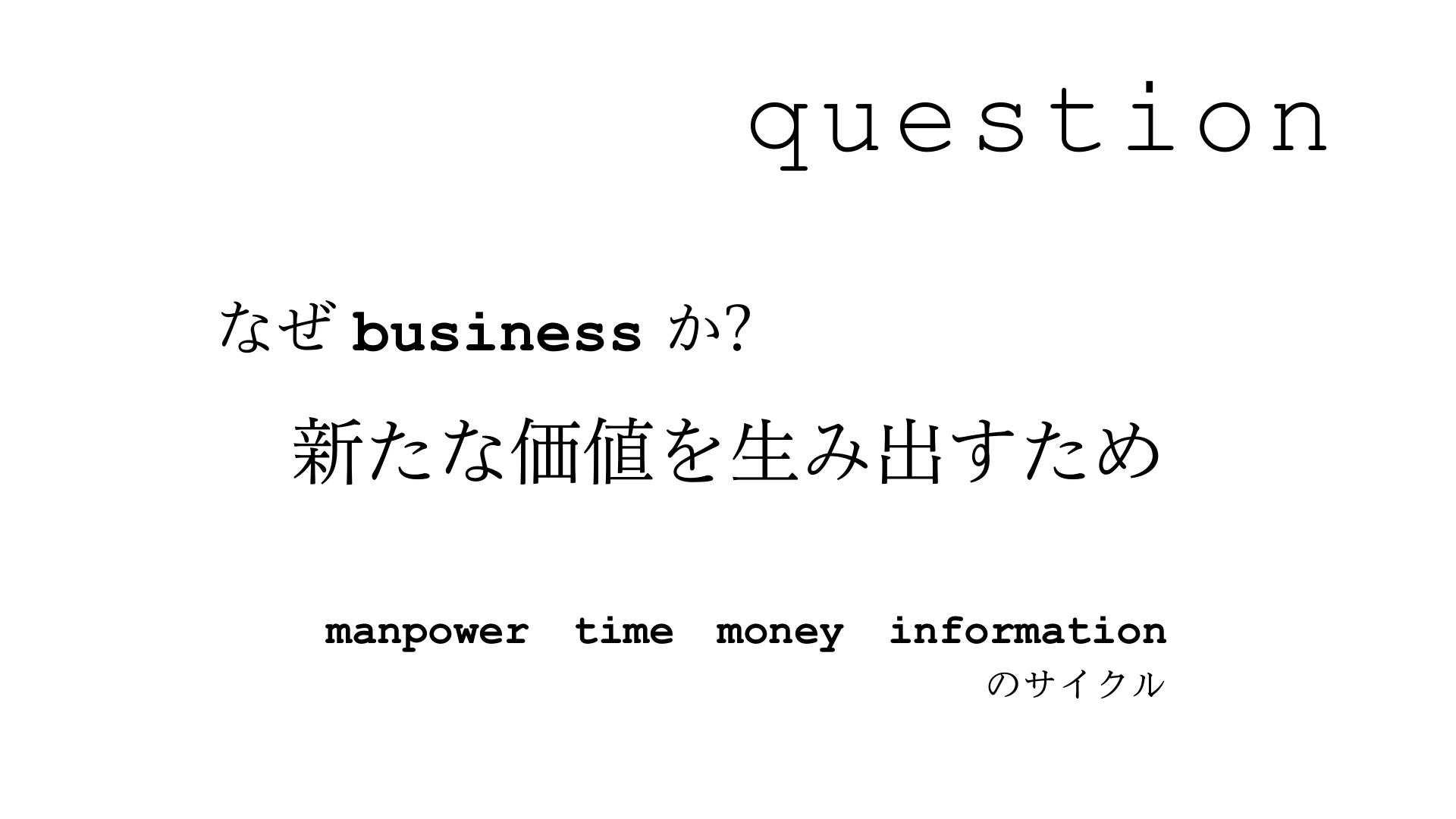 #47. question なぜ business か? 新たな価値を生み出すため manpower time money information のサイクル