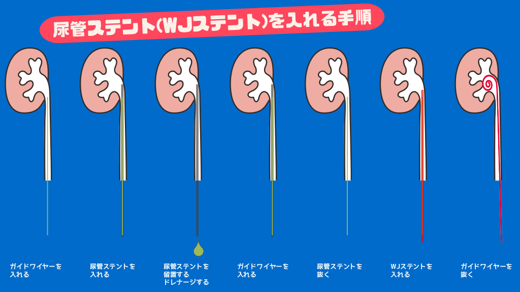 #18. ガイドワイヤーを 入れる 尿管ステントを 入れる 尿管ステントを 留置する ドレナージする ガイドワイヤーを 入れる 尿管ステントを 抜く WJステントを 入れる ガイドワイヤーを 抜く