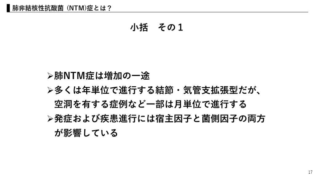 17 小括 その1 肺非結核性抗酸菌 (NTM)症とは? 肺NTM症は増加の一途