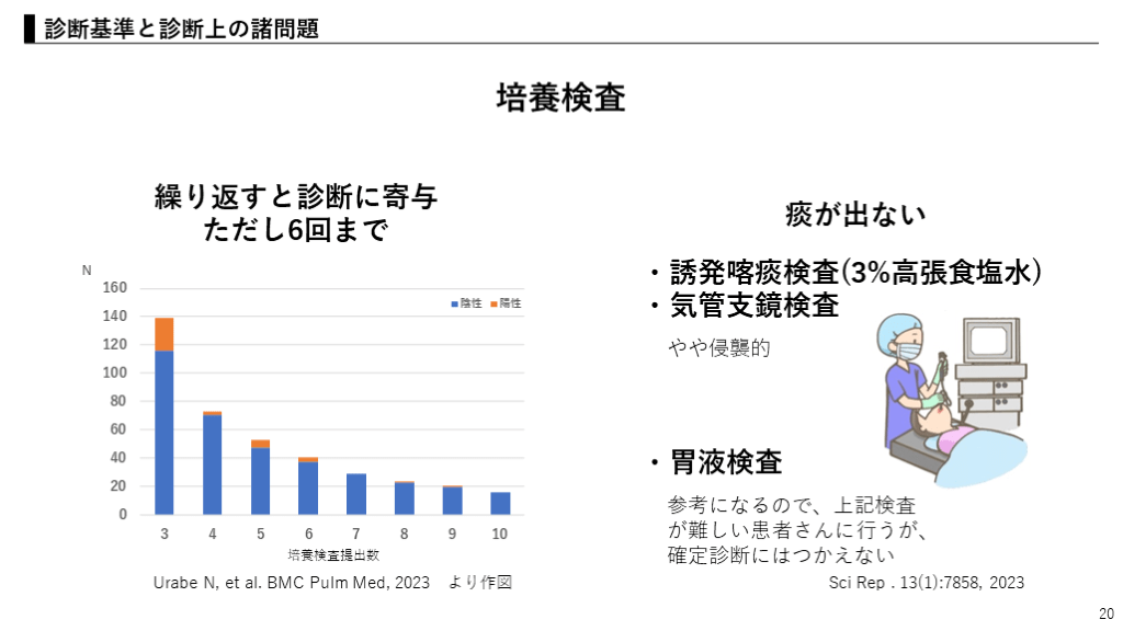 20 培養検査 診断基準と診断上の諸問題 Urabe N, et al. BMC Pulm Med, 2023 より作図 繰り返すと診断に寄与