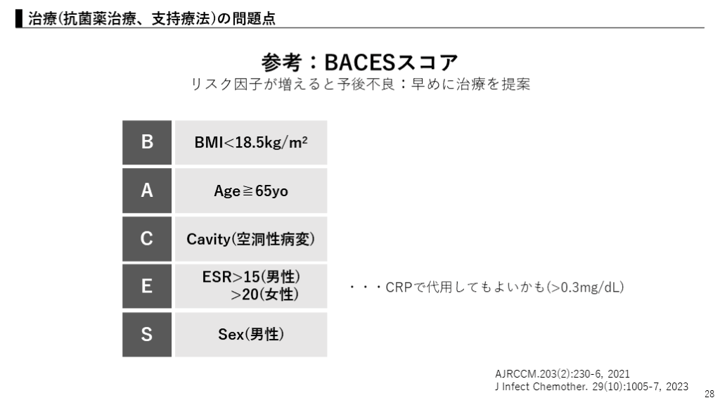 まずは胸部CT、培養検査(一般・抗酸菌) 治療(抗菌薬治療、支持療法)の問題点 症状増悪