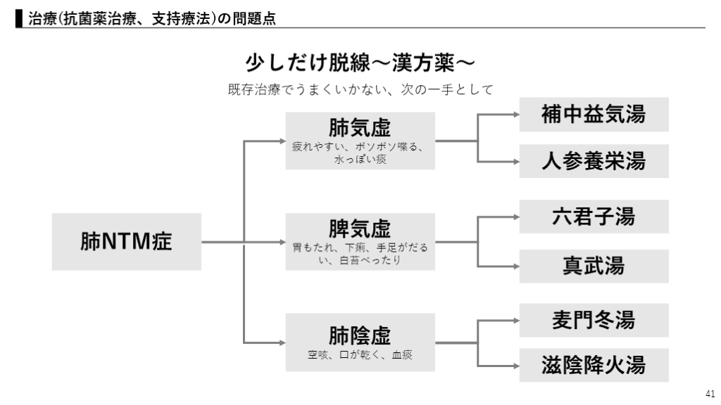 41 少しだけ脱線〜漢方薬〜 治療(抗菌薬治療、支持療法)の問題点 肺NTM症 肺気虚