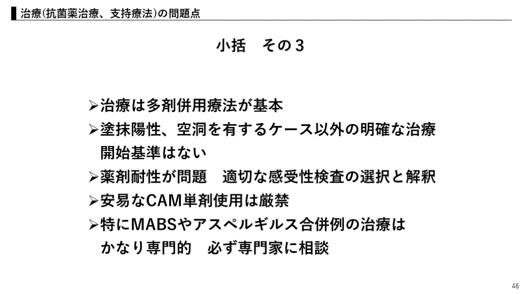 特にMABSやアスペルギルス合併例の治療はかなり専門的 必ず専門家に相談 #47.