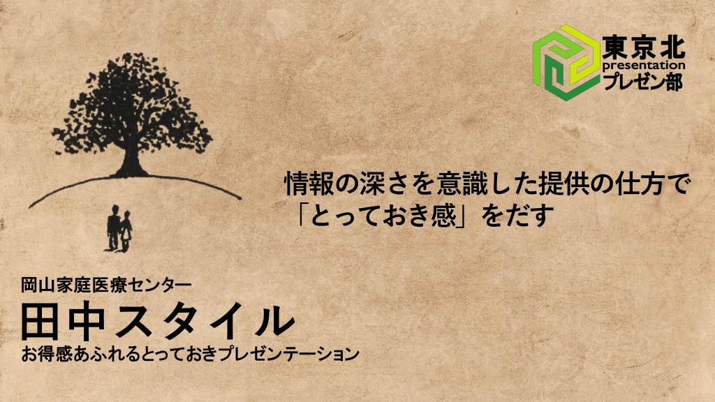 #1. 田中 道徳先生から プレゼンのヒントを もらったので紹介 岡山家庭医療センター 田中スタイル お得感あふれるとっておきプレゼンテーション