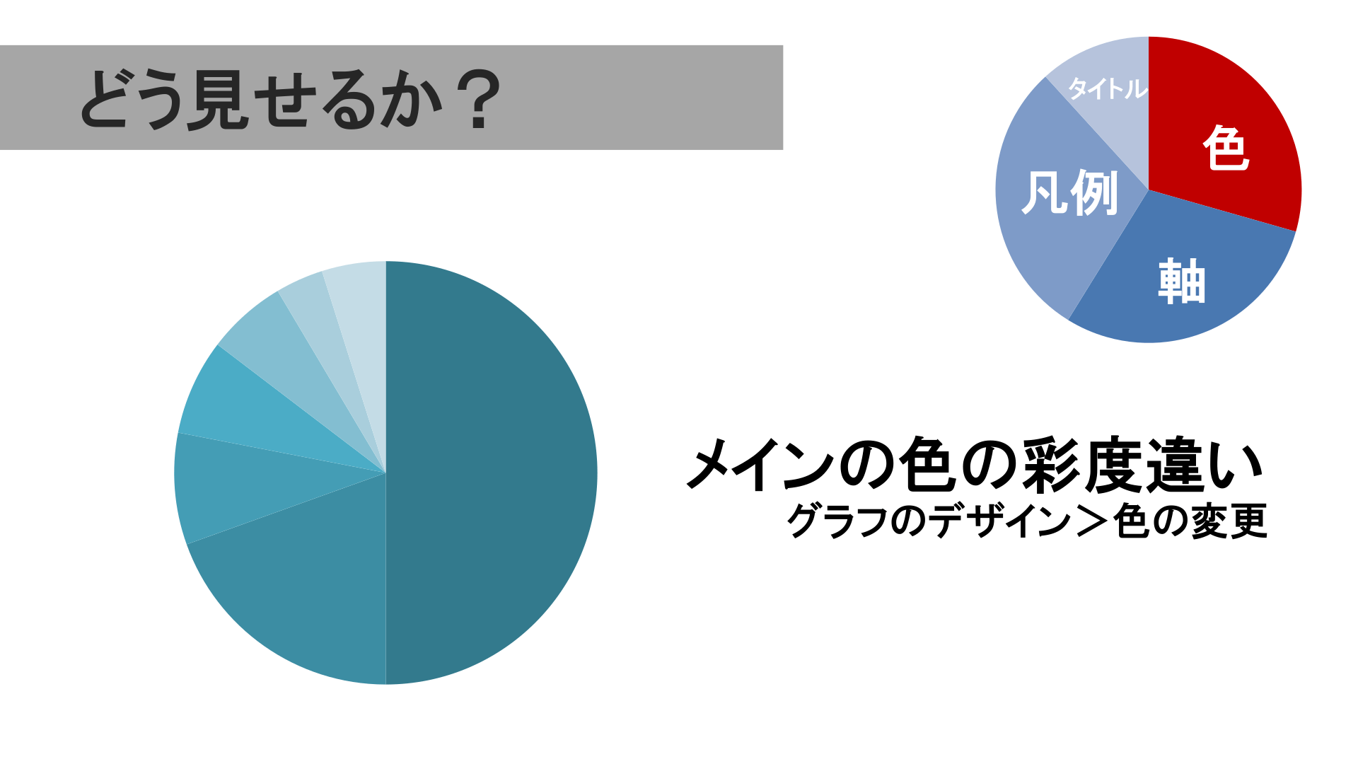 #11. どう見せるか? タイトル 凡例 色 軸 メインの色の彩度違い +アクセントカラー
