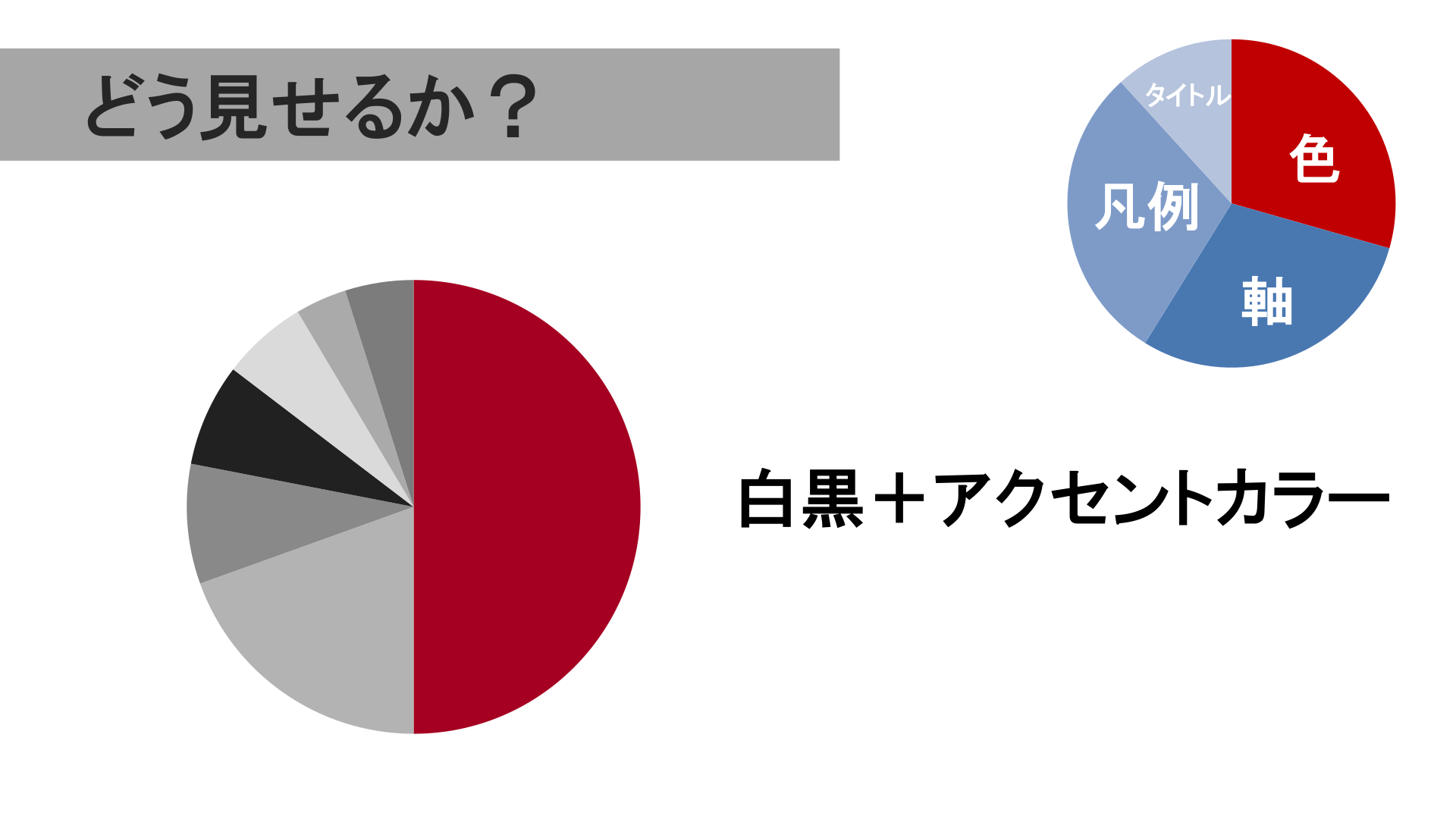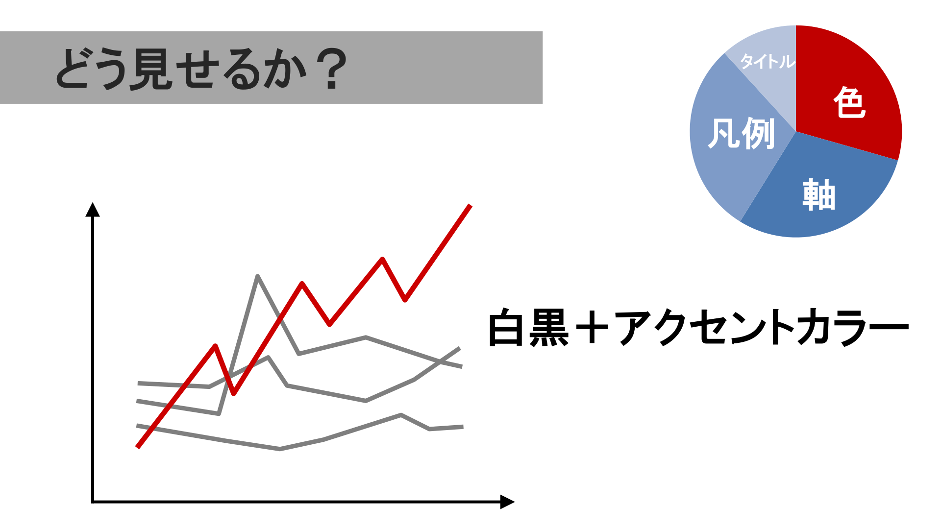 #13. どう見せるか? タイトル 凡例 色 軸 白黒+アクセントカラー