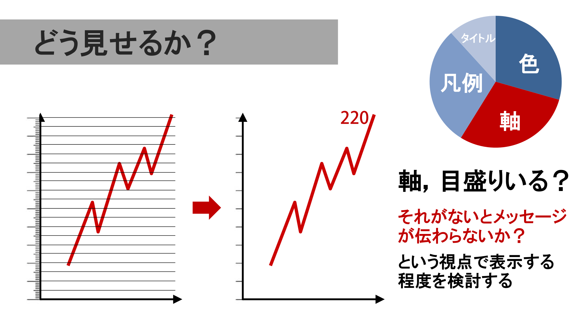 #12. どう見せるか? タイトル 凡例 色 軸 白黒+アクセントカラー