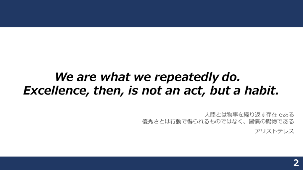 Excellence, then, is not an act, but a habit. 人間とは物事を繰り返す存在である