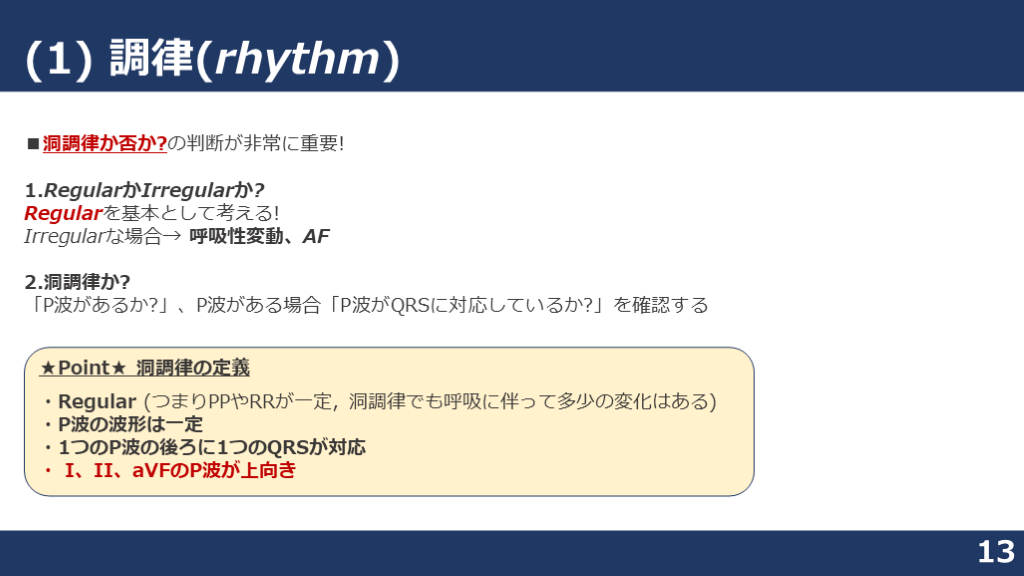 #13. (1) 調律(rhythm) 13 ■洞調律か否か?の判断が非常に重要!
