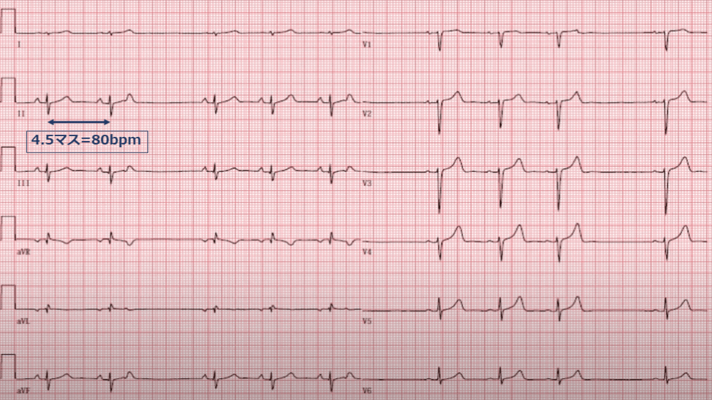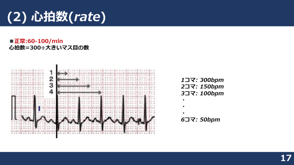 (2)心拍数(rate) 正常 60-100 bpm 4.5マス=80bpm