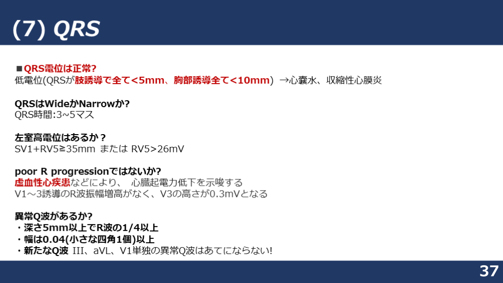(7)QRS波 異常Q波?QRS時間は正常か (<3マス)?