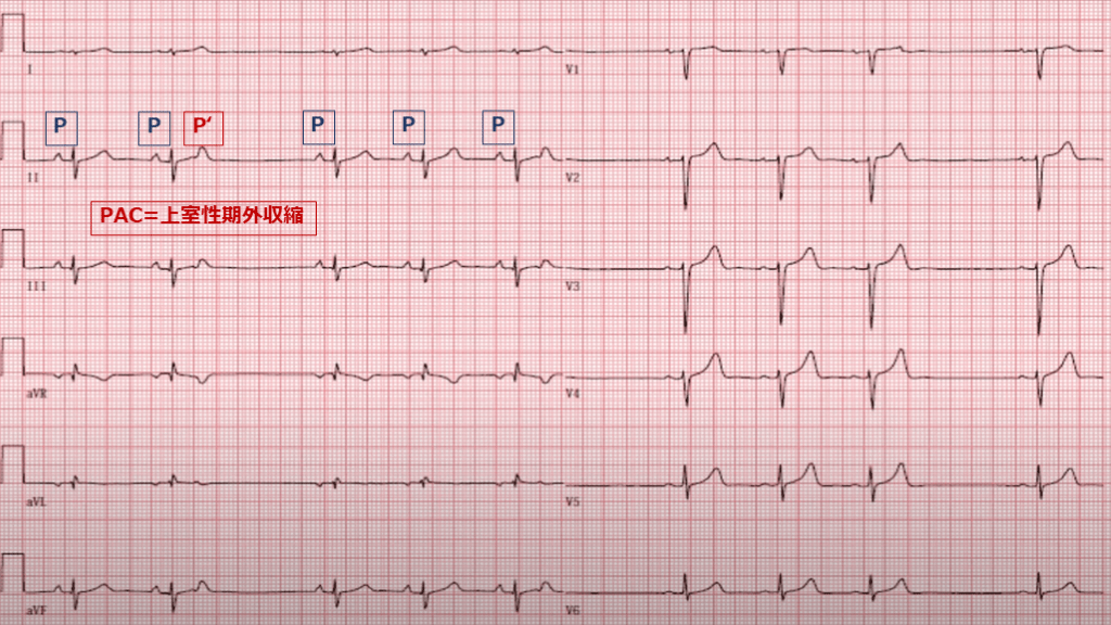 (2)心拍数(rate) 正常 60-100 bpm P P P P P P‘ PAC=上室性期外収縮