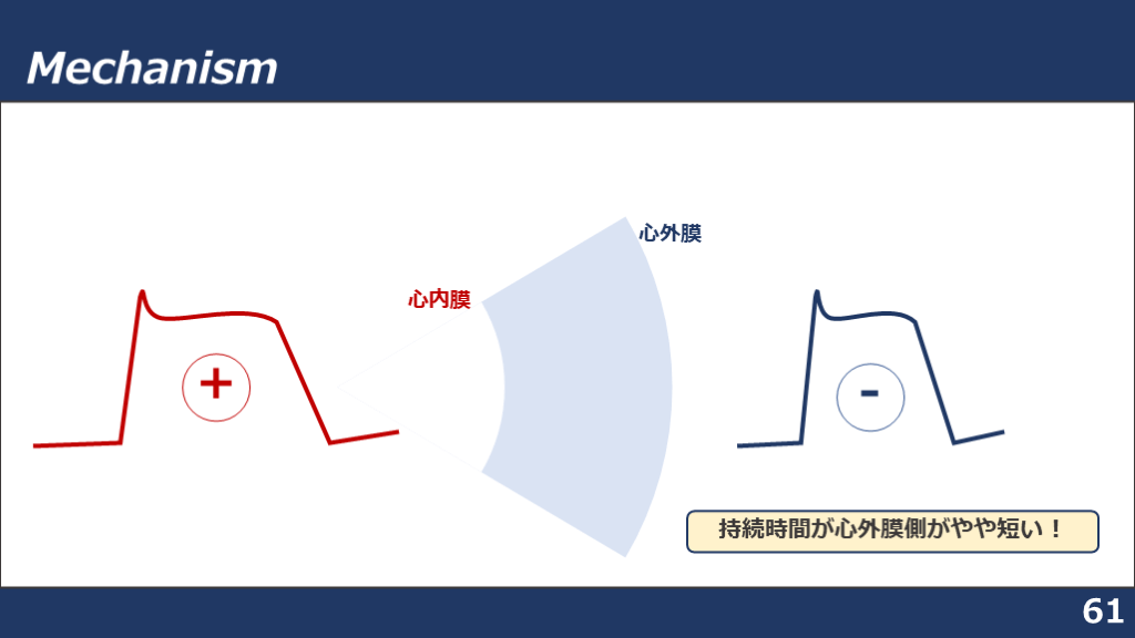#59. Mechanism 61 心内膜 心外膜 - + 持続時間が心外膜側がやや短い!