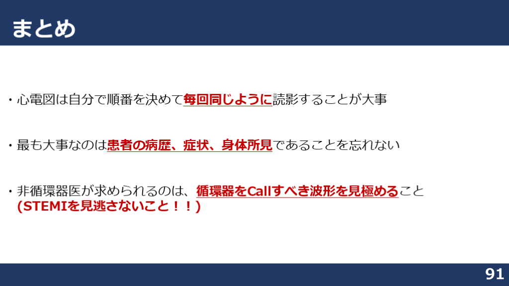 #89. まとめ 91 ・心電図は自分で順番を決めて毎回同じように読影することが大事