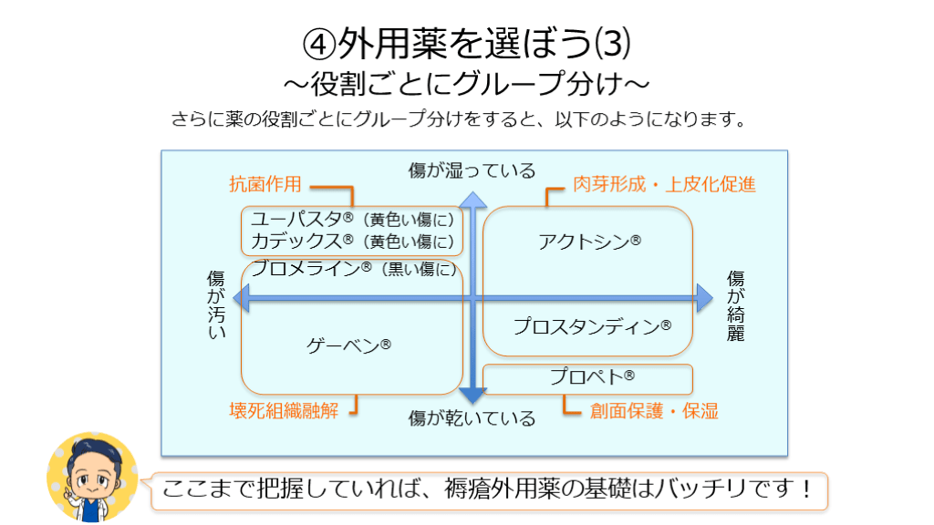 ここまで把握していれば、褥瘡外用薬の基礎はバッチリです!