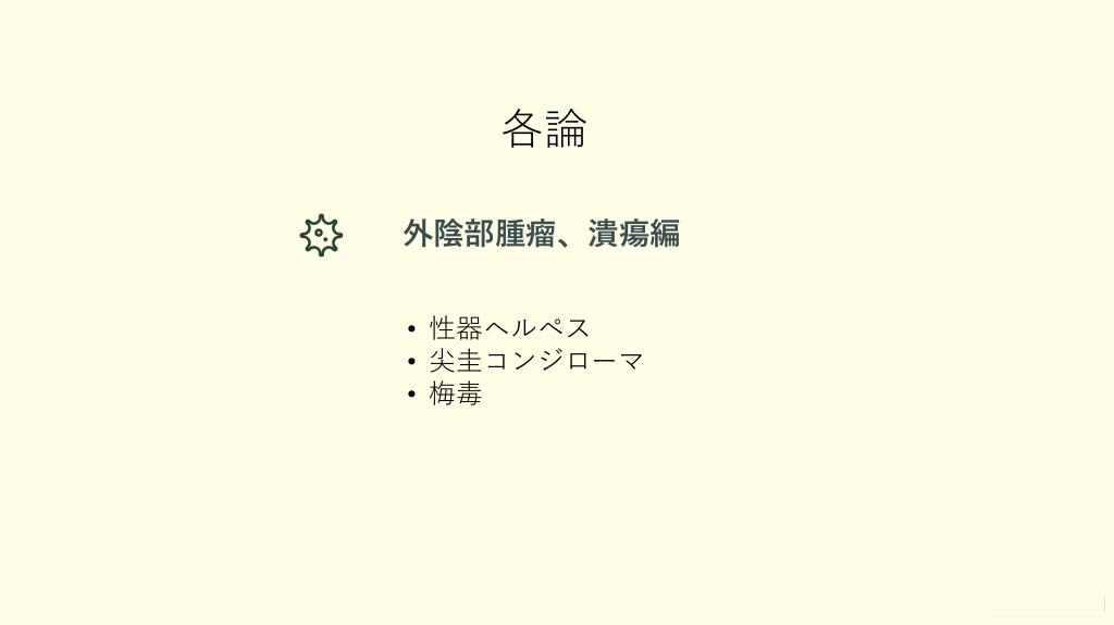 #13. 各論 外陰部腫瘤、潰瘍編 • 性器ヘルペス • 尖圭コンジローマ • 梅毒 preencoded.png