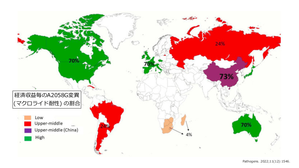 経済収益毎のA2058G変異 (マクロライド耐性) の割合 Pathogens. 2022;11(12):1546. #38.