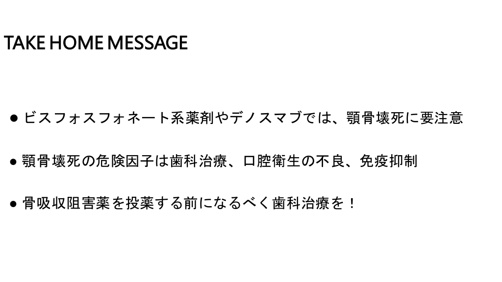 TAKE HOME MESSAGE: 顎骨壊死の注意点