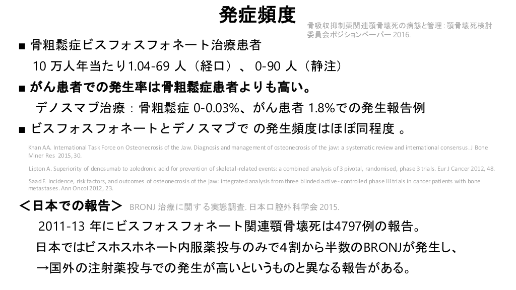 顎骨壊死の発症メカニズムと頻度