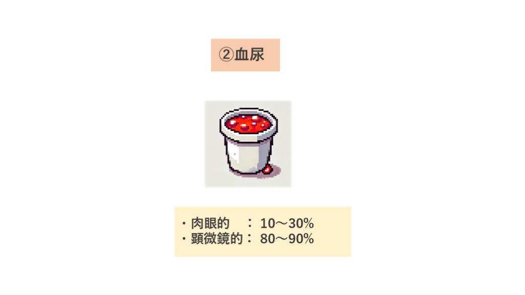 #10. ②血尿 ・肉眼的 : 10〜30%