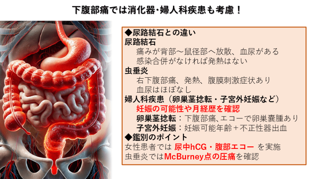 #22. 下腹部痛では消化器・婦人科疾患も考慮! ◆尿路結石との違い