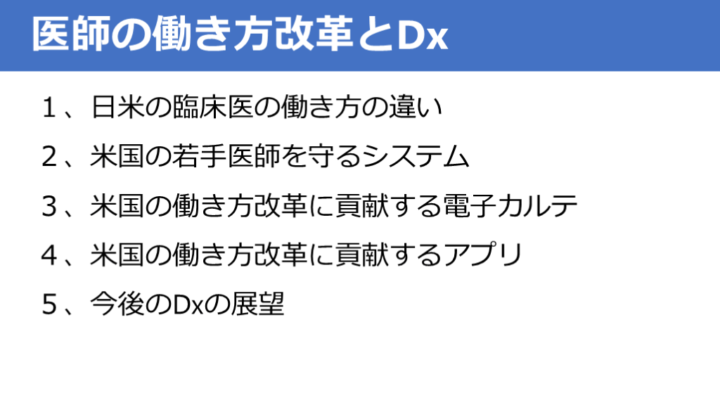 #3. 医師の働き方改革とDx 1、日米の臨床医の働き方の違い