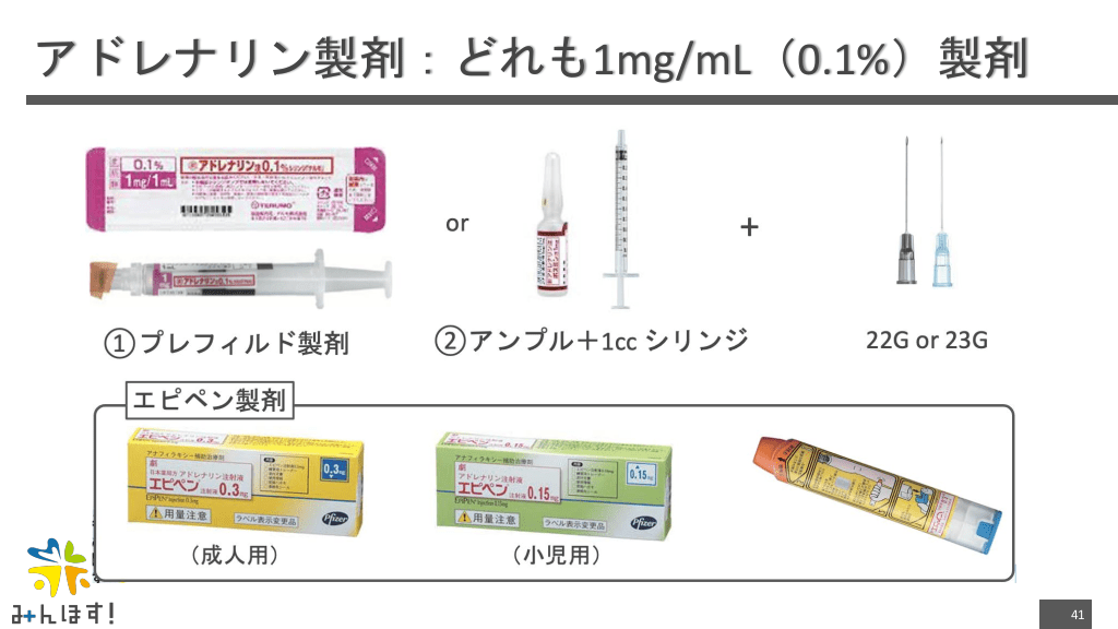 #41. アドレナリン製剤:どれも1mg/mL(0.1%)製剤 41