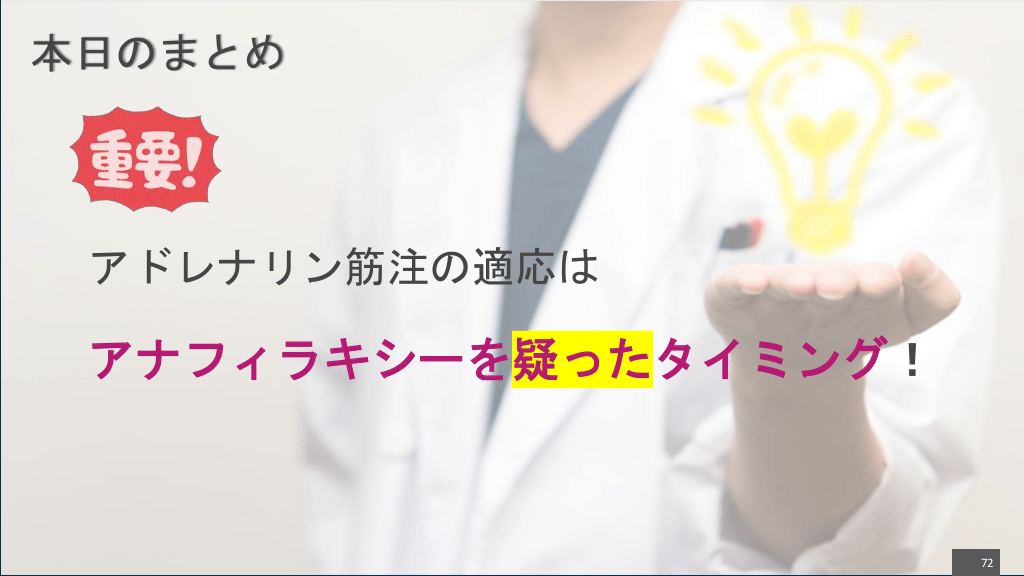 #72. 本日のまとめ アドレナリン筋注の適応は アナフィラキシーを疑ったタイミング! 72