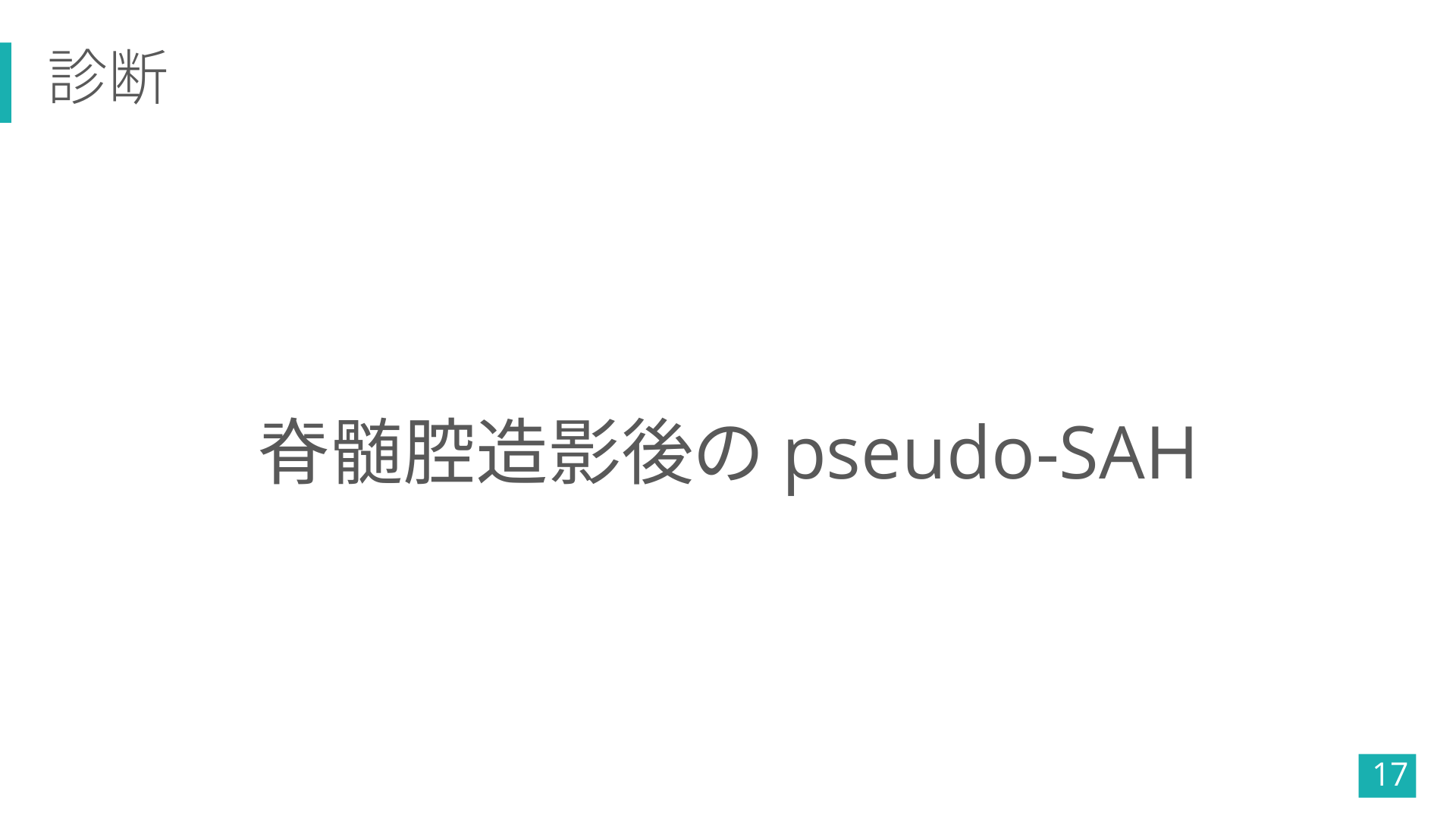 診断 脊髄腔造影後の pseudo-SAH 17 pseudo-SAHの原因と機序 #18.
