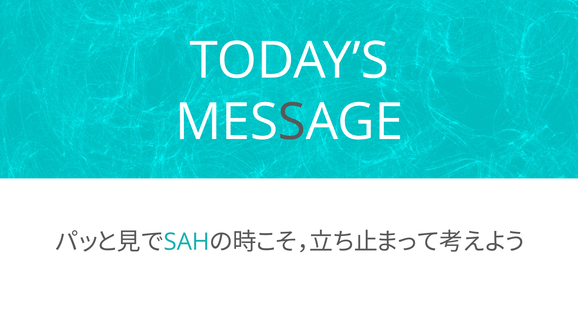 TODAY’S MESSAGE パッと見でSAHの時こそ,立ち止まって考えよう 症例紹介と画像診断の結果 #5.