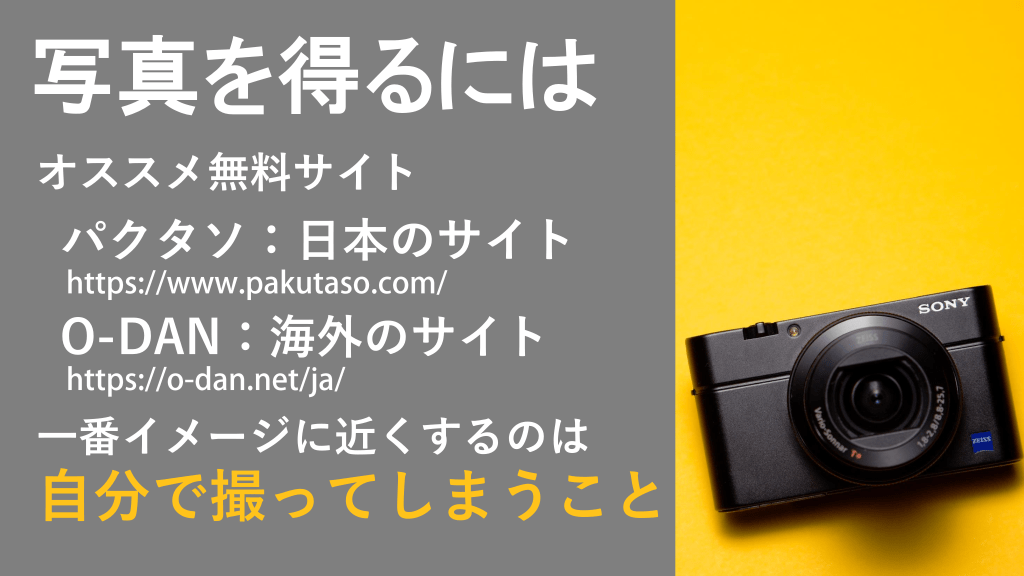 #12. 写真を得るには オススメ無料サイト パクタソ:日本のサイト O-DAN:海外のサイト 一番イメージに近くするのは 自分で撮ってしまうこと