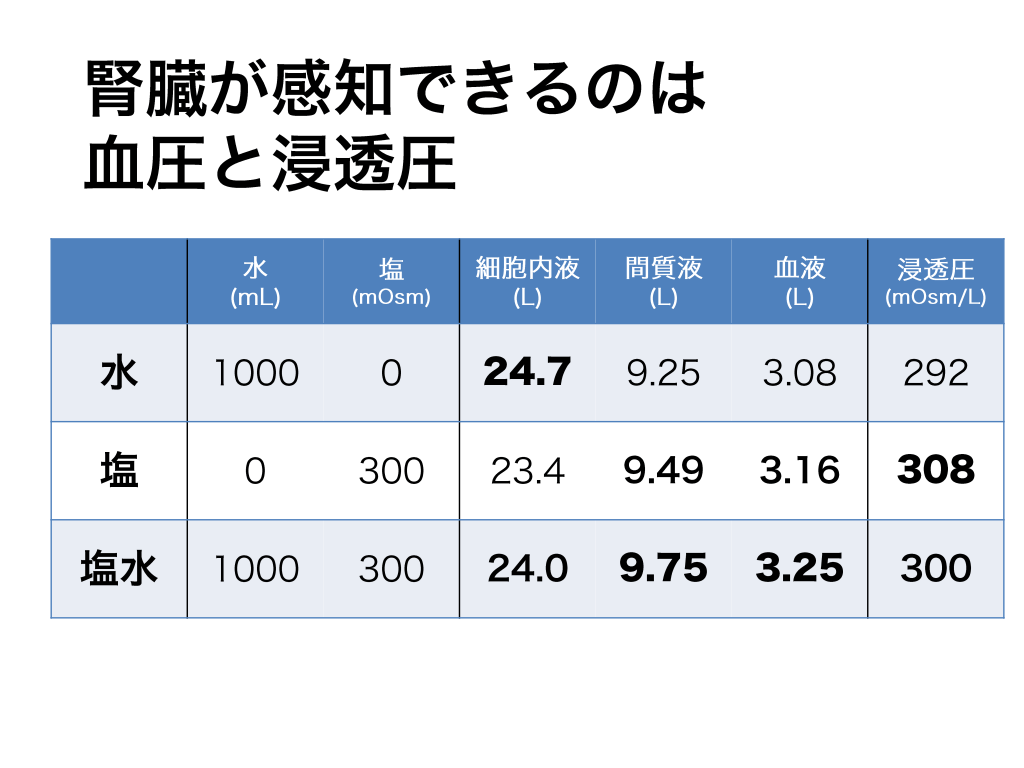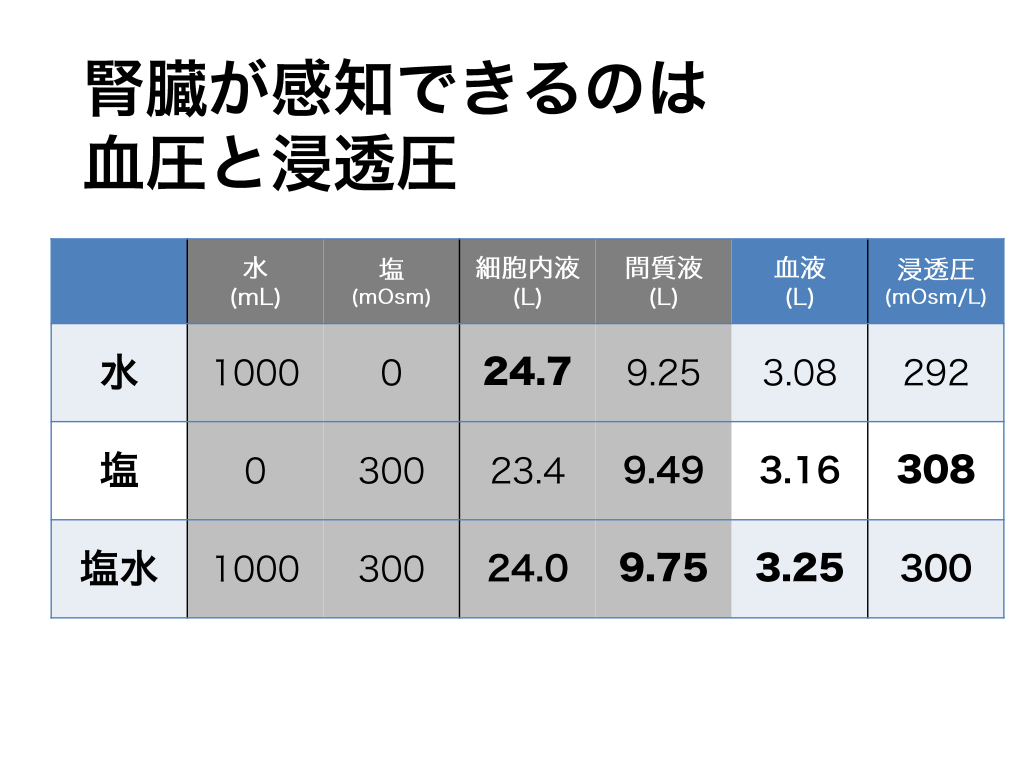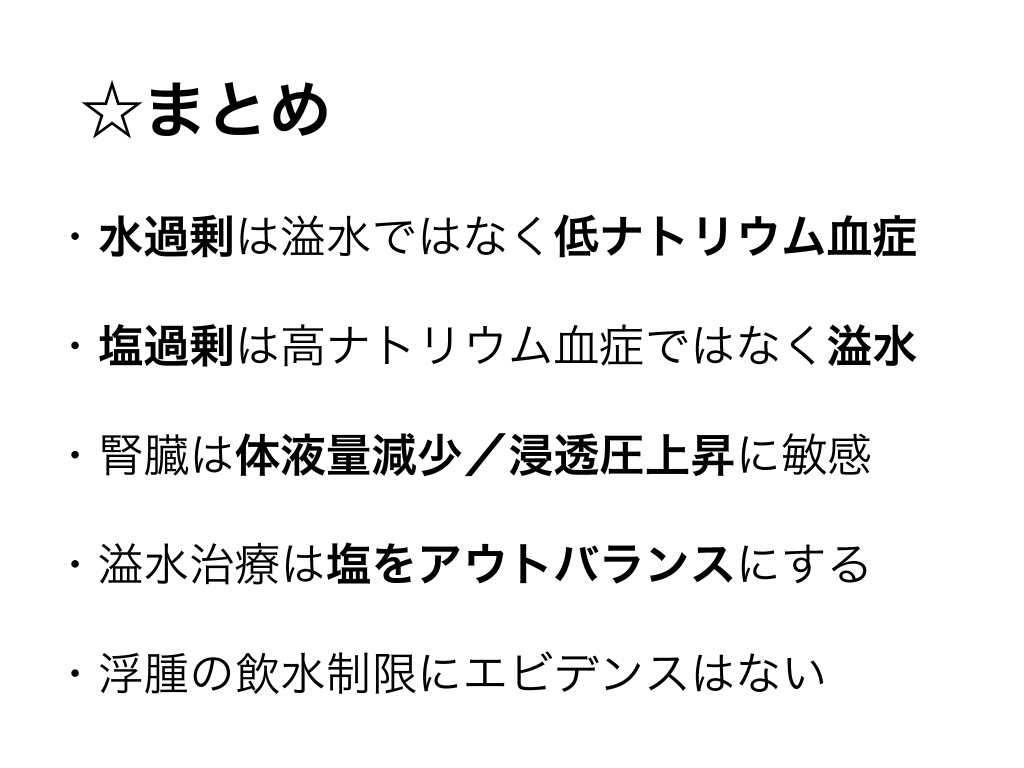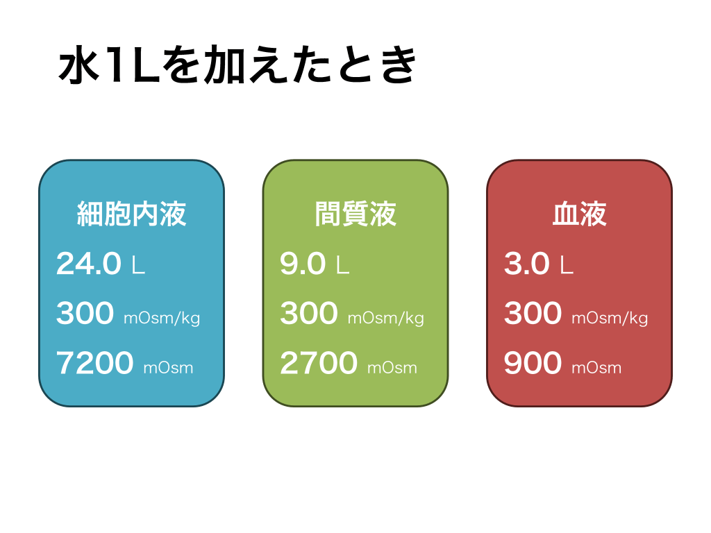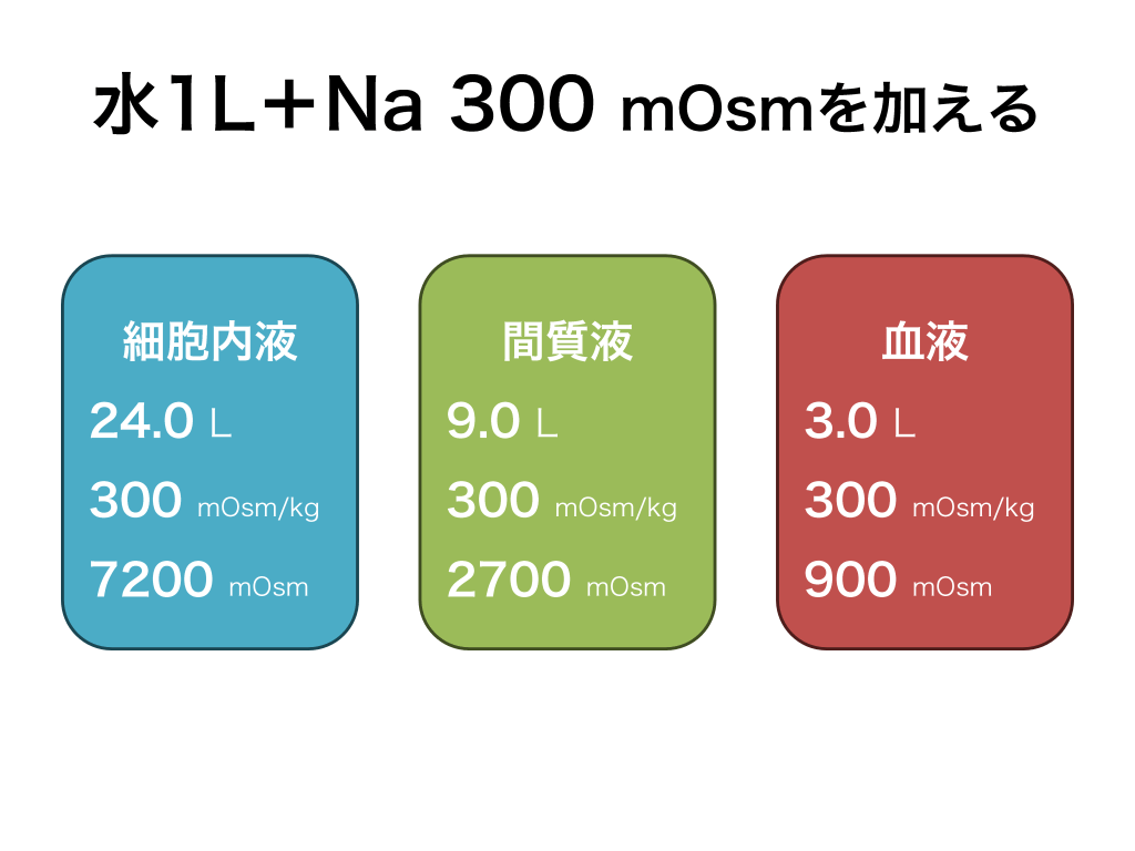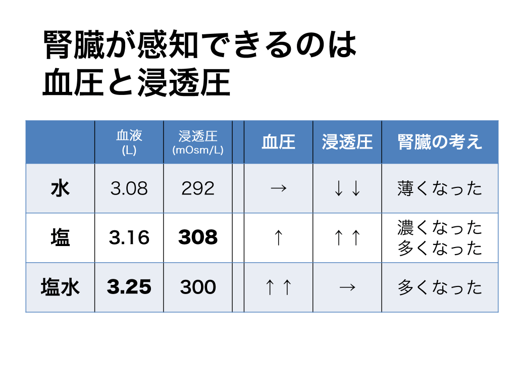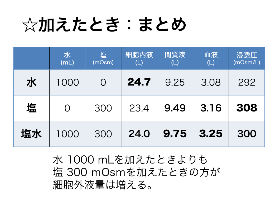 輸液を、水と塩に分けて考えてみようというスライドです。