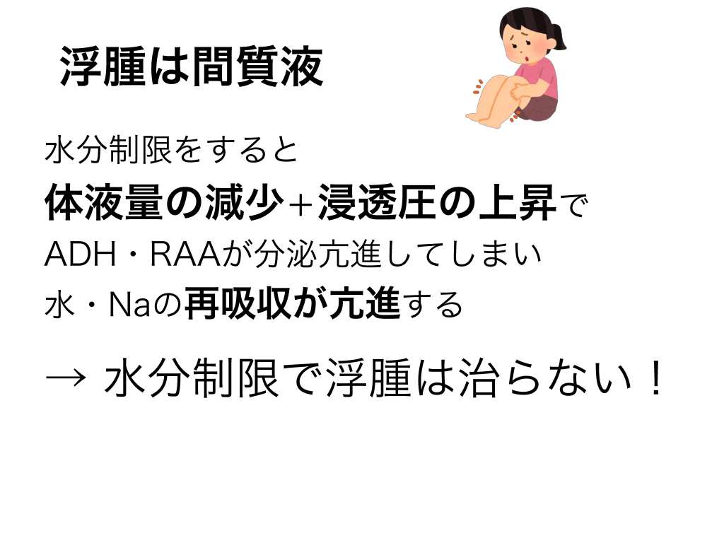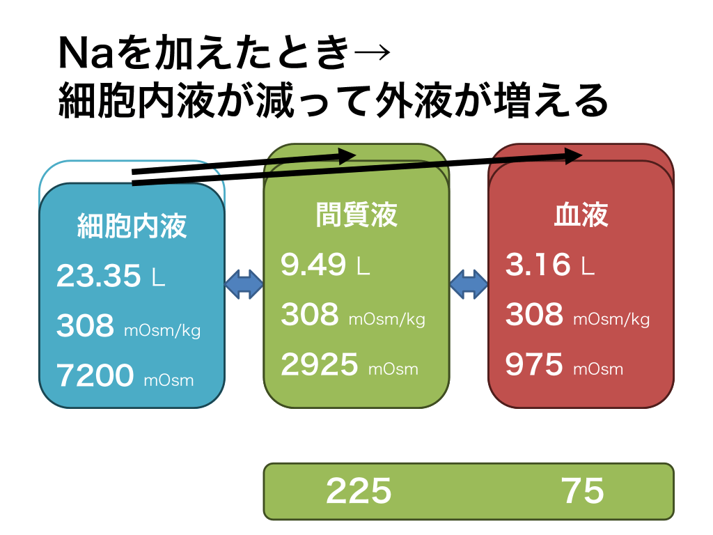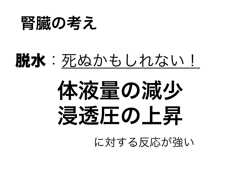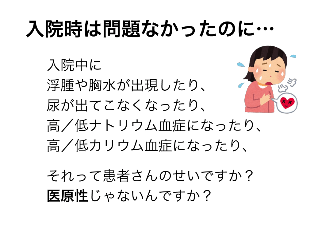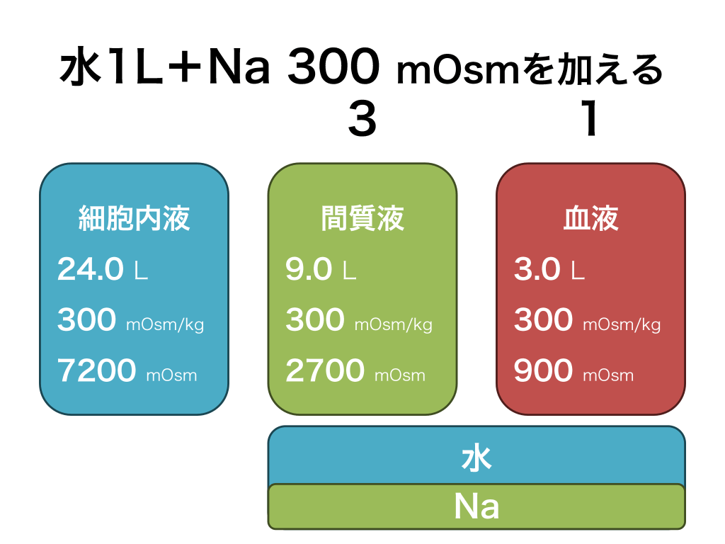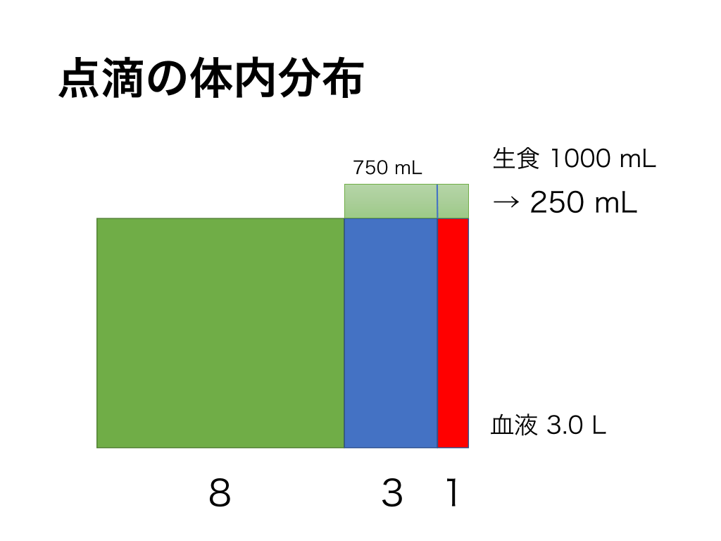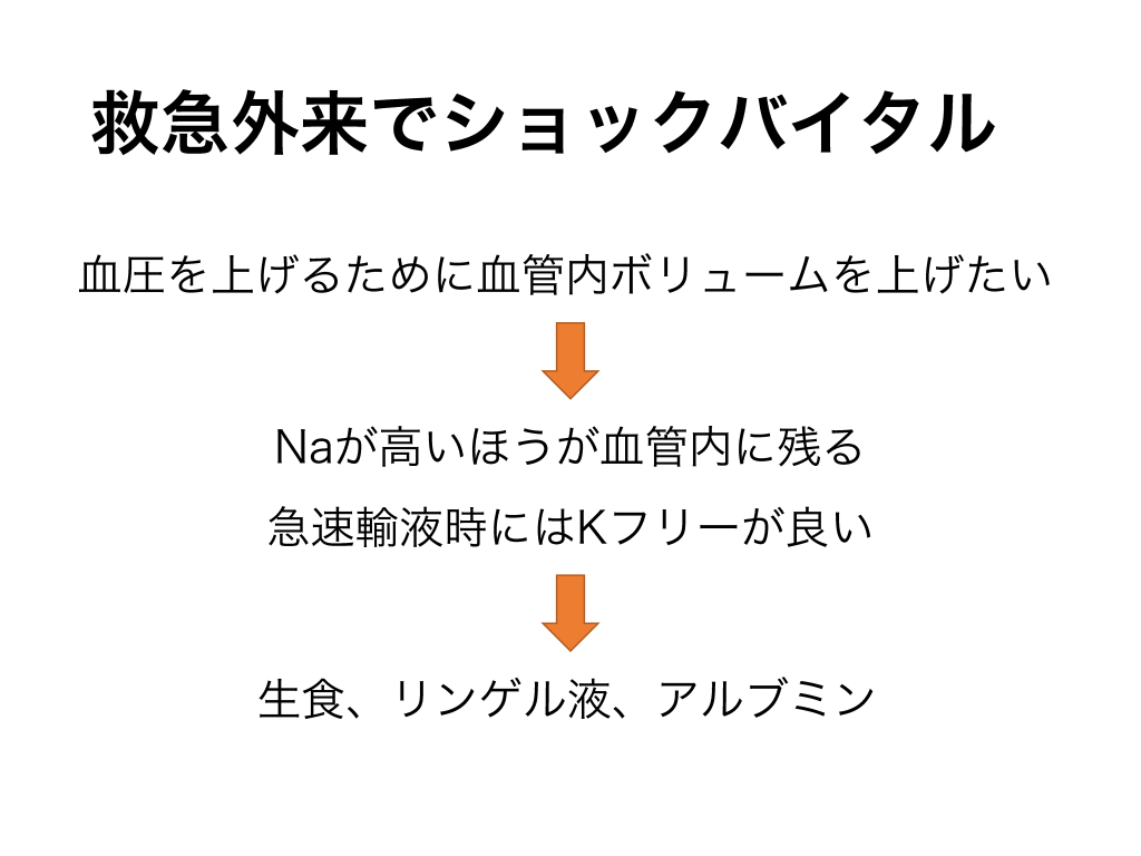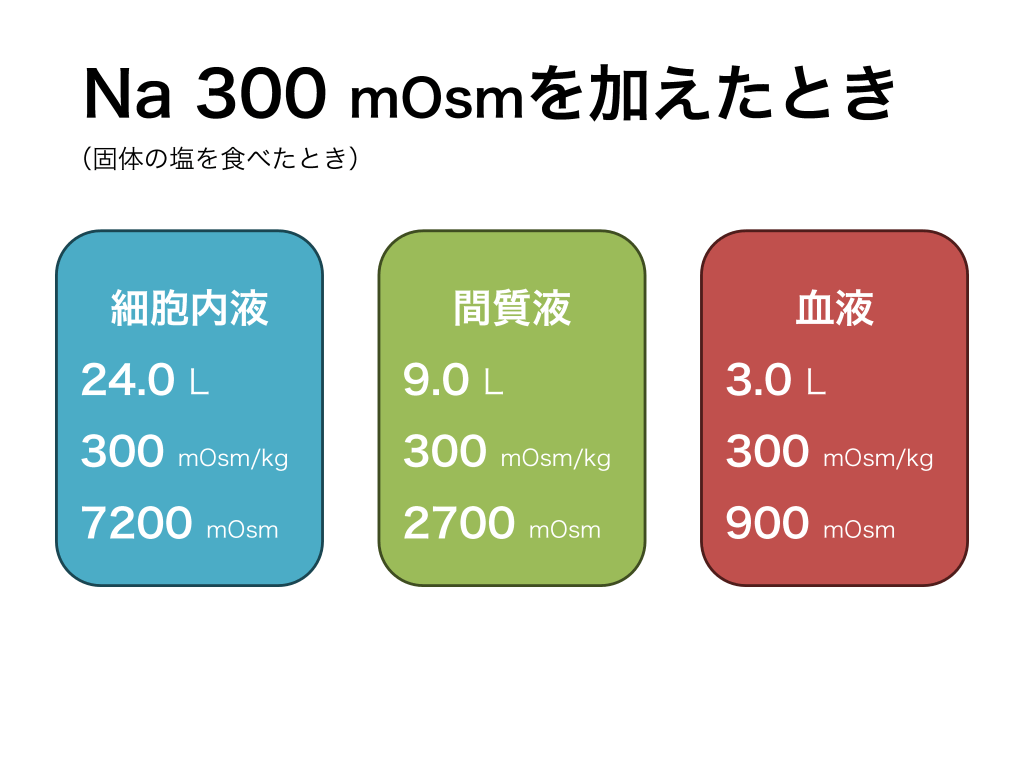 輸液を、水と塩に分けて考えてみようというスライドです。