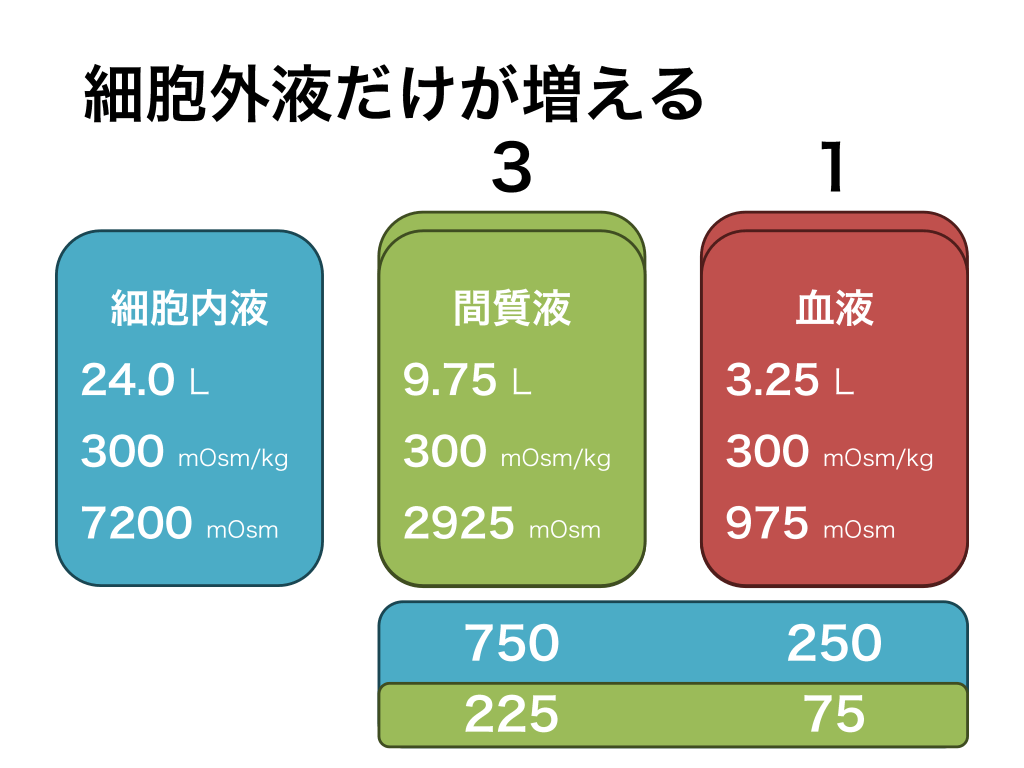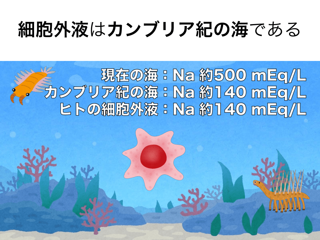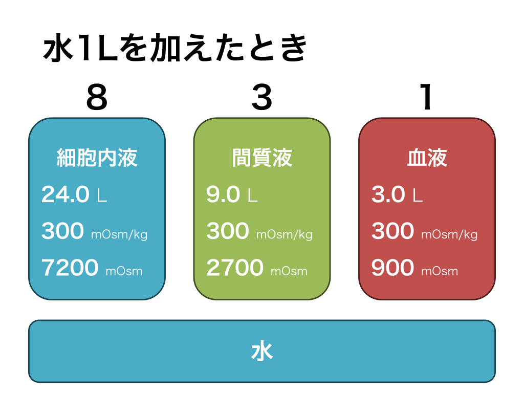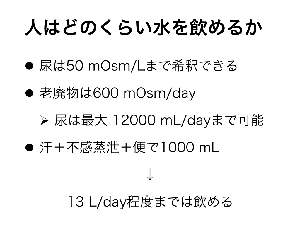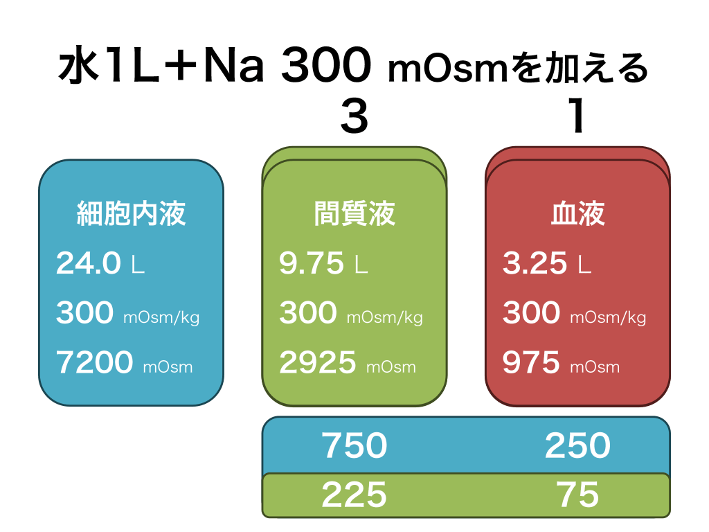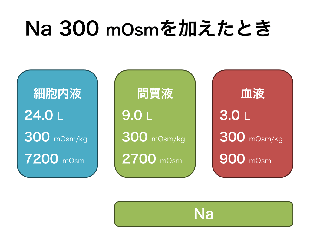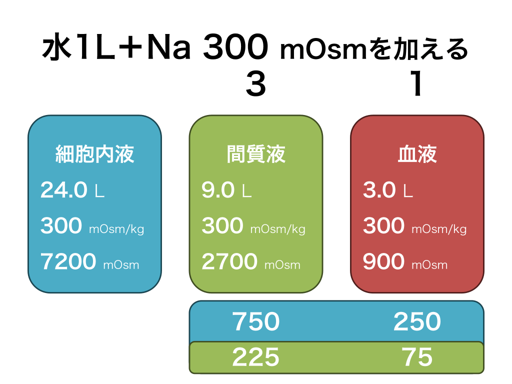 輸液を、水と塩に分けて考えてみようというスライドです。