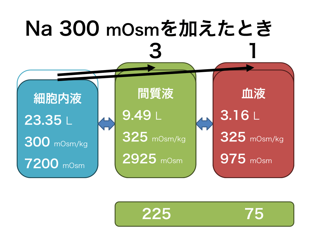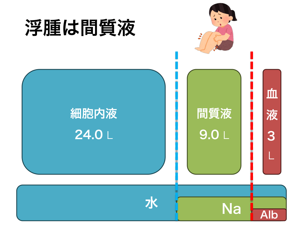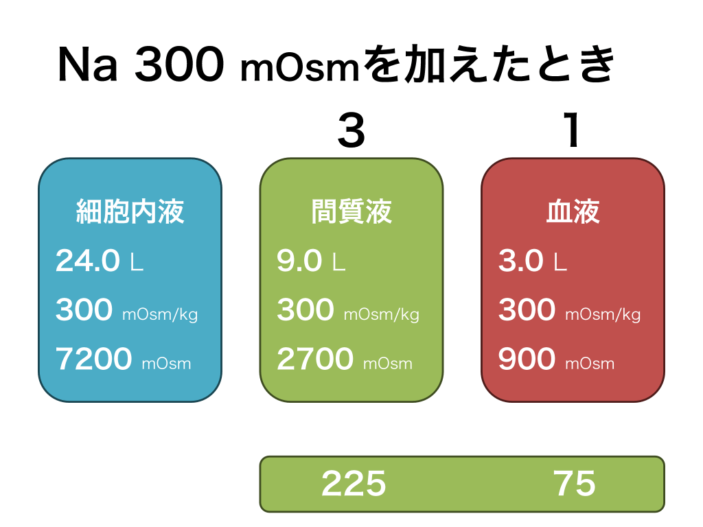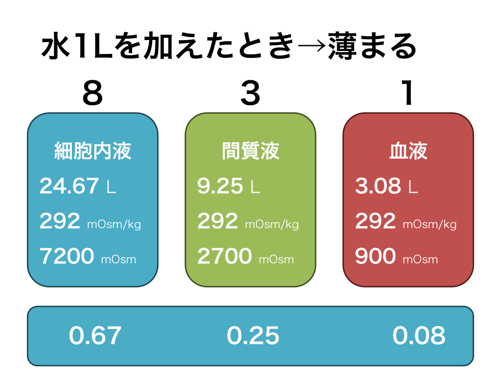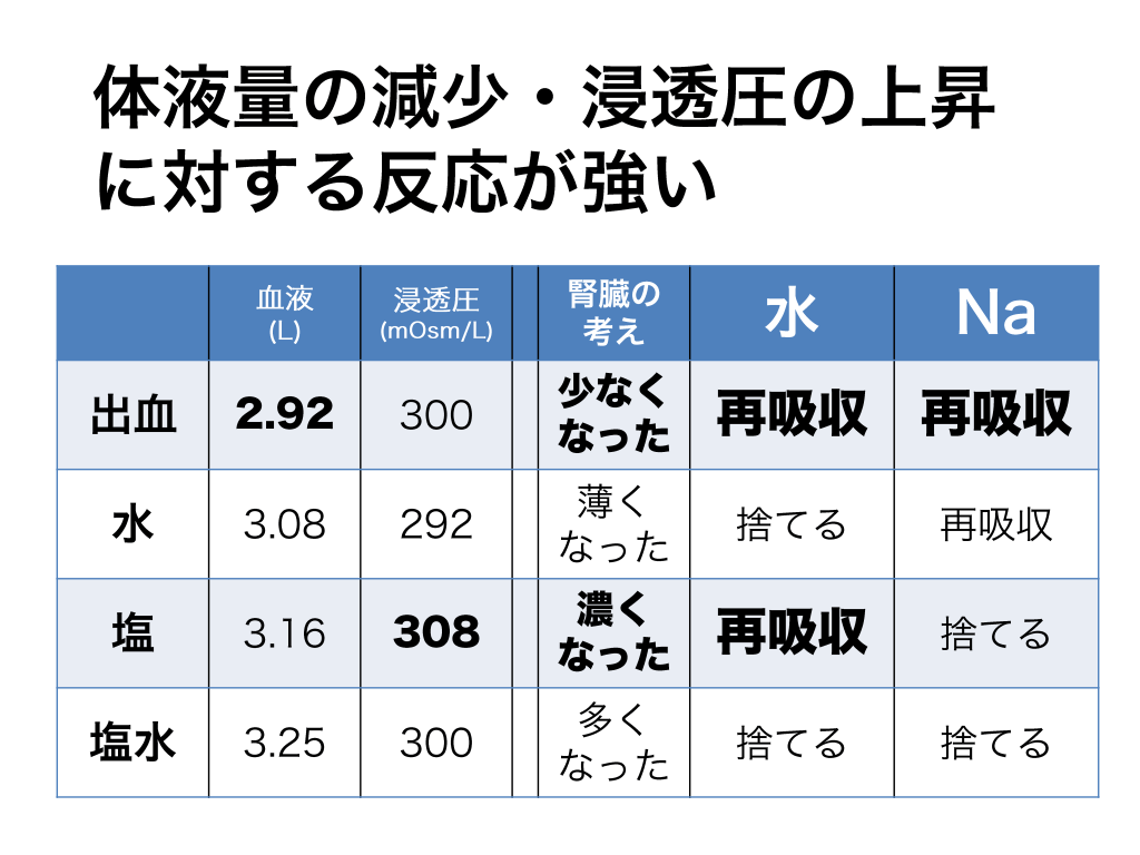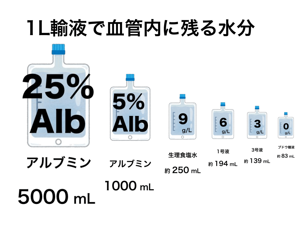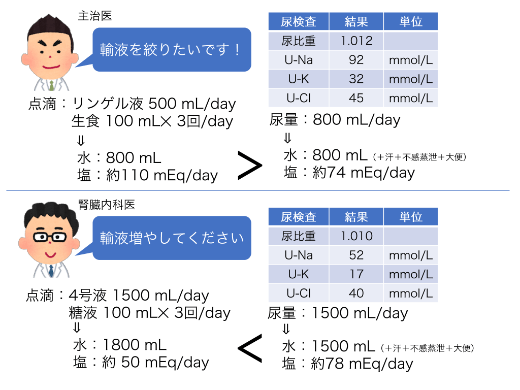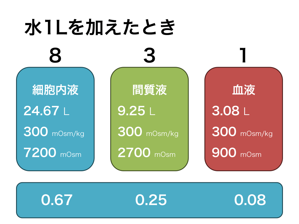 輸液を、水と塩に分けて考えてみようというスライドです。