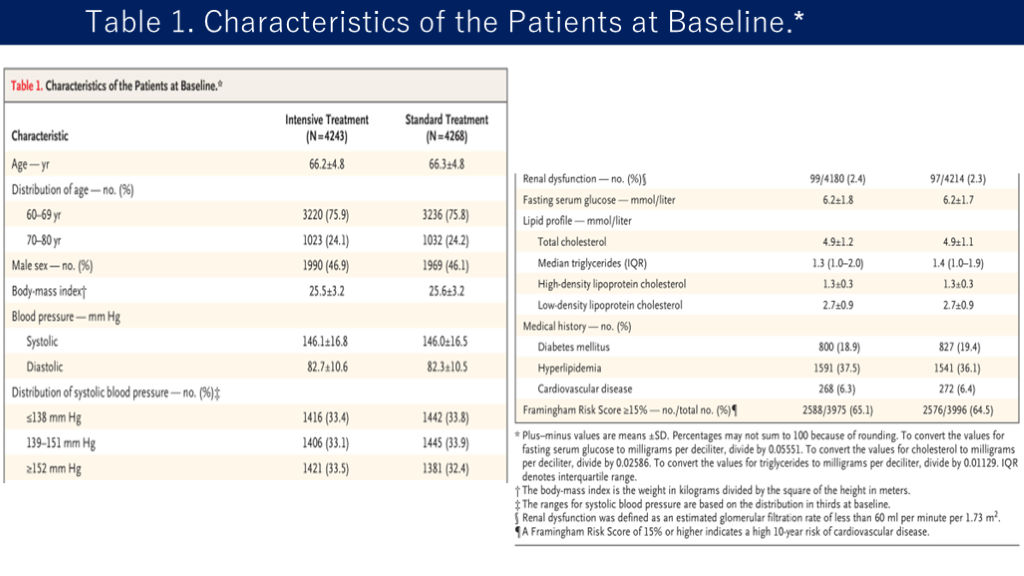 in Older Patients with Hypertension 60~80歳の高血圧患者に対する収縮期血圧目標値110~130mmHgとする強化治療は、同130~150mmHgとする標準治療に比べ、心血管イベント発生リスクを約4分の3に低減する