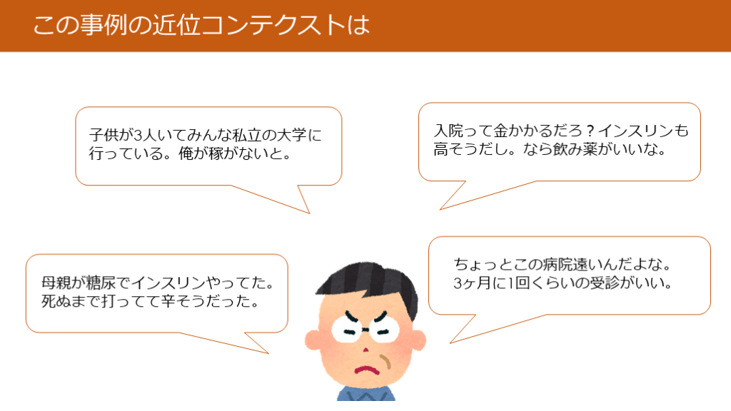 #40. この事例の近位コンテクストは 母親が糖尿でインスリンやってた。