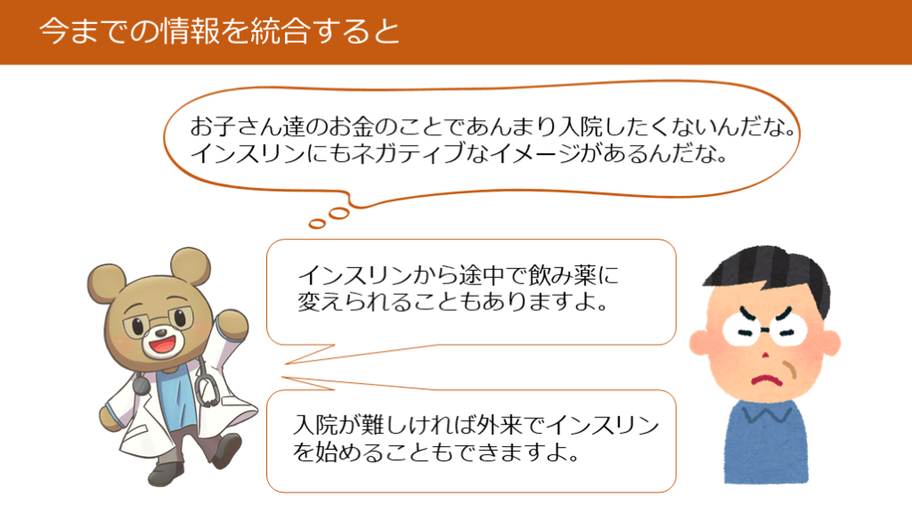 #44. 今までの情報を統合すると お子さん達のお金のことであんまり入院したくないんだな。