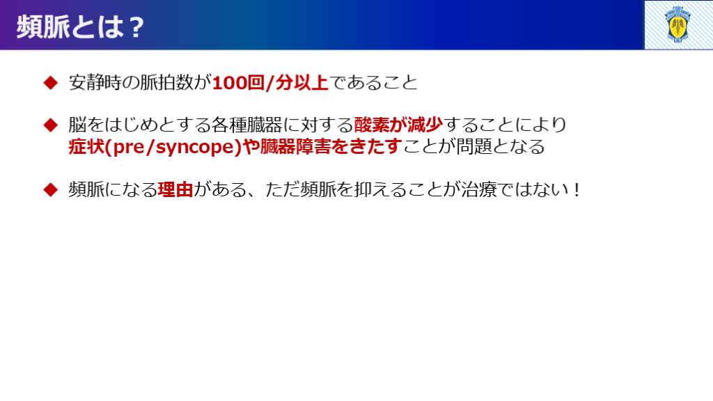 頻脈になる理由がある、ただ頻脈を抑えることが治療ではない!