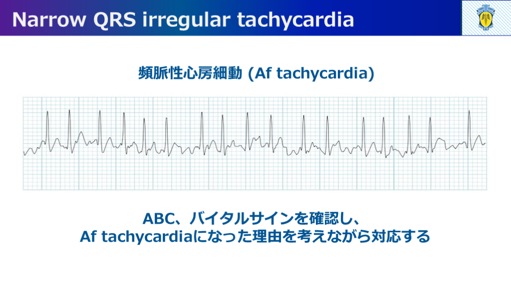 #19. Narrow QRS irregular tachycardia 頻脈性心房細動 (Af tachycardia) ABC、バイタルサインを確認し、