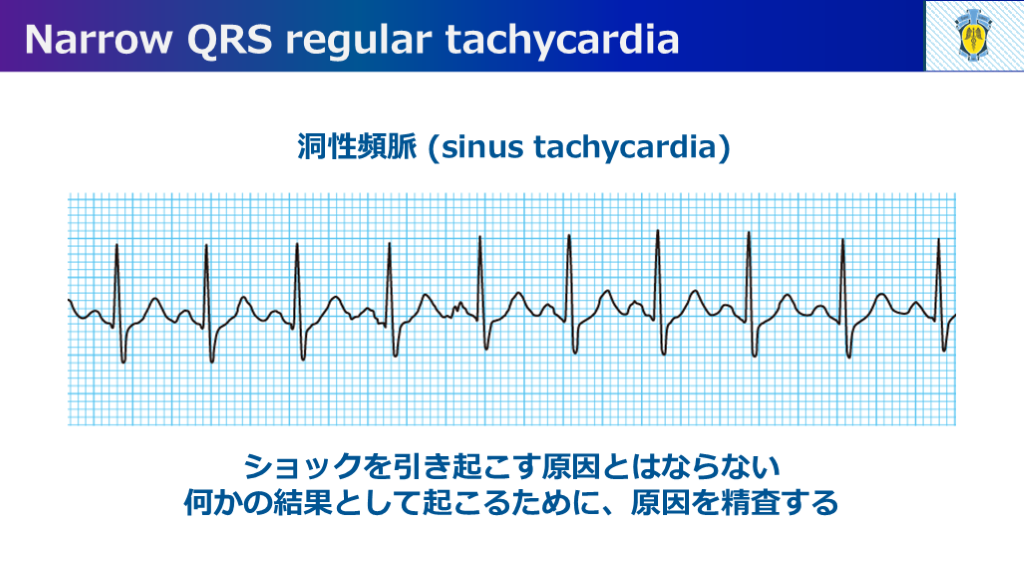 #24. Narrow QRS regular tachycardia 洞性頻脈 (sinus tachycardia) ショックを引き起こす原因とはならない