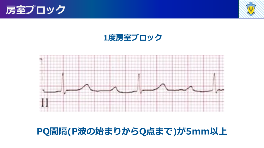 #40. 房室ブロック 1度房室ブロック PQ間隔(P波の始まりからQ点まで)が5mm以上