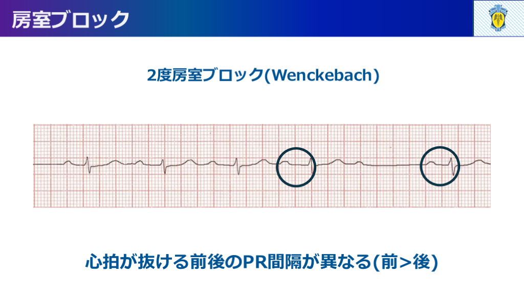 #41. 房室ブロック 2度房室ブロック(Wenckebach) 心拍が抜ける前後のPR間隔が異なる(前>後)