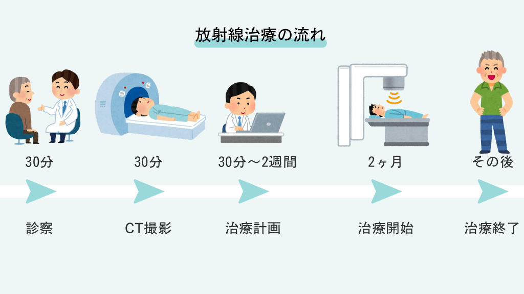 #11. 放射線治療の流れ 30分 30分 診察 CT撮影 30分〜2週間 治療計画 2ヶ月 その後 治療開始 治療終了